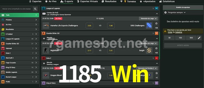 O 1185 Win oferece uma grande seleção de opções de apostas em e-sports com probabilidades competitivas